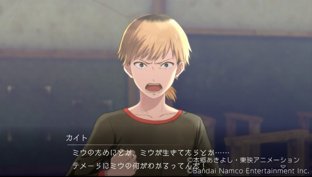 激情ルートもですが、調和ルートの仲間たち、「ミウはそんなこと、きっと望んでない(具体的根拠のない代弁)」「悲しいからこそ、前を向いて」みたいな、カイトにとっての地雷ワード言いすぎじゃないですかね…。
